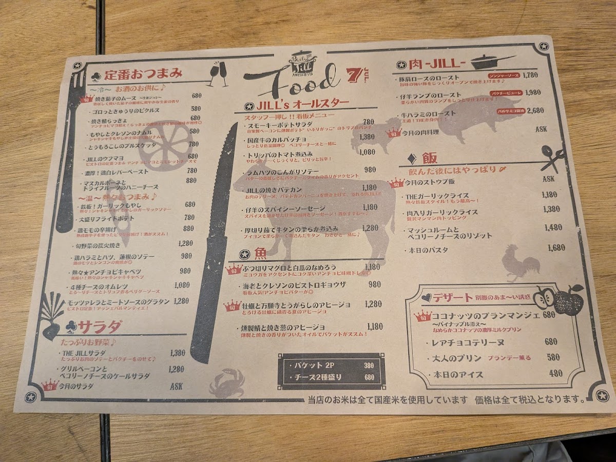 Welcome to Bistro Jill, a hidden gem nestled in the heart of Tokyo’s Meguro City. Bistro Jill offers an exquisite menu that celebrates the vibrant flavors of seasonal ingredients, from the elegant 旬野菜のムース to the comforting 4種チーズのオムレツ, each priced affordably to invite a broader audience to indulge. The signature JILL's オールスター: スモーキーポテトサラダ is a must-try, showcasing creativity and taste.